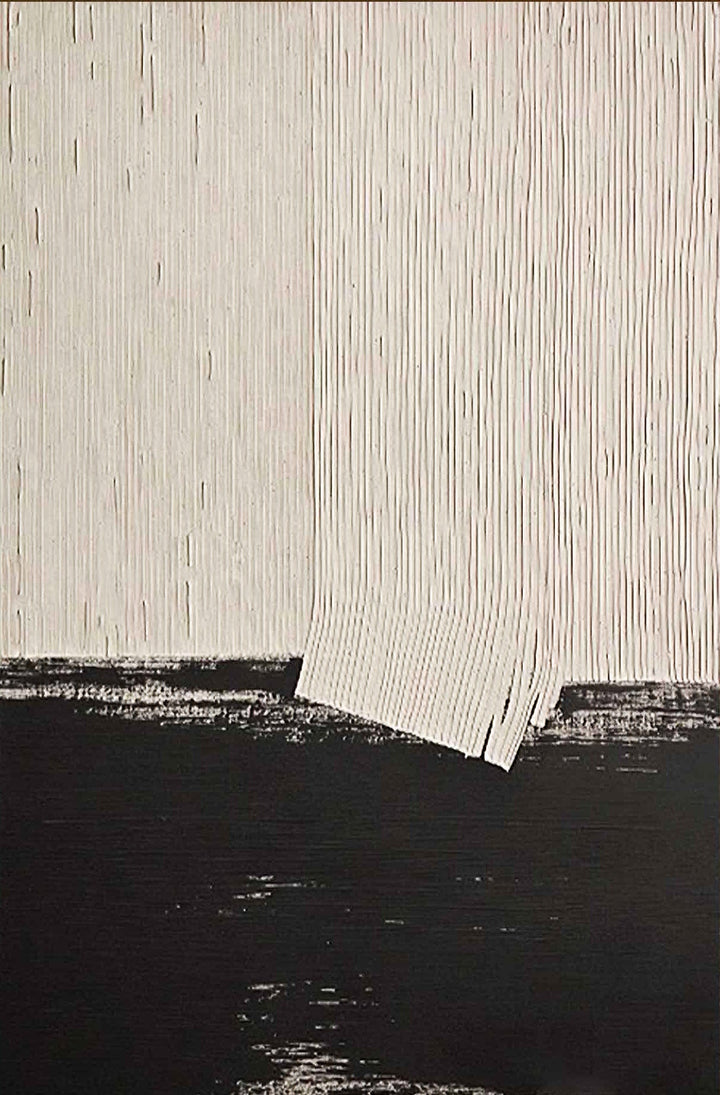 Introduce a sense of harmony and balance to your space with "Monochrome Balance," an abstract painting that masterfully blends simplicity with depth. This artwork features a stark contrast between light and dark, with bold black tones grounding the lower half of the composition and intricate linear patterns in soft neutrals above. The interplay of these elements creates a dynamic yet serene visual effect, perfect for modern and minimalist interiors. The textured surface invites closer inspection, adding depth and intrigue to the piece. Whether displayed in a living room, office, or gallery, "Monochrome Balance" brings a refined and sophisticated touch to your decor, making it an ideal focal point for any contemporary setting.